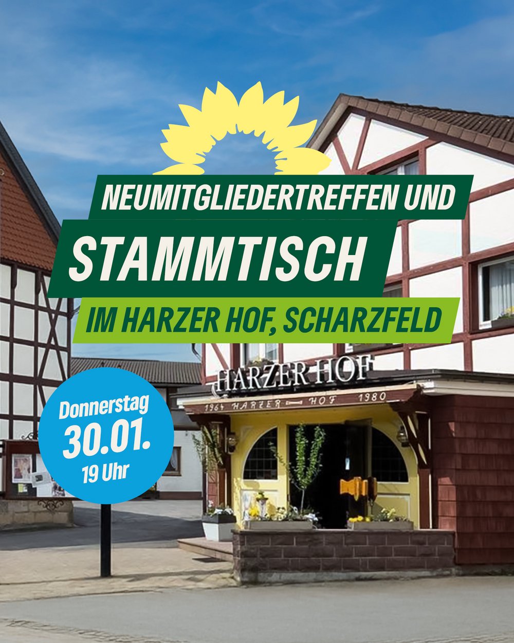 Am 30.01. um 19:00 Uhr laden wir alle Mitglieder, Nicht-Mitglieder und vor allem Neumitglieder herzlich zum Grünen Stammtisch in den Harzer Hof nach Scharzfeld ein!