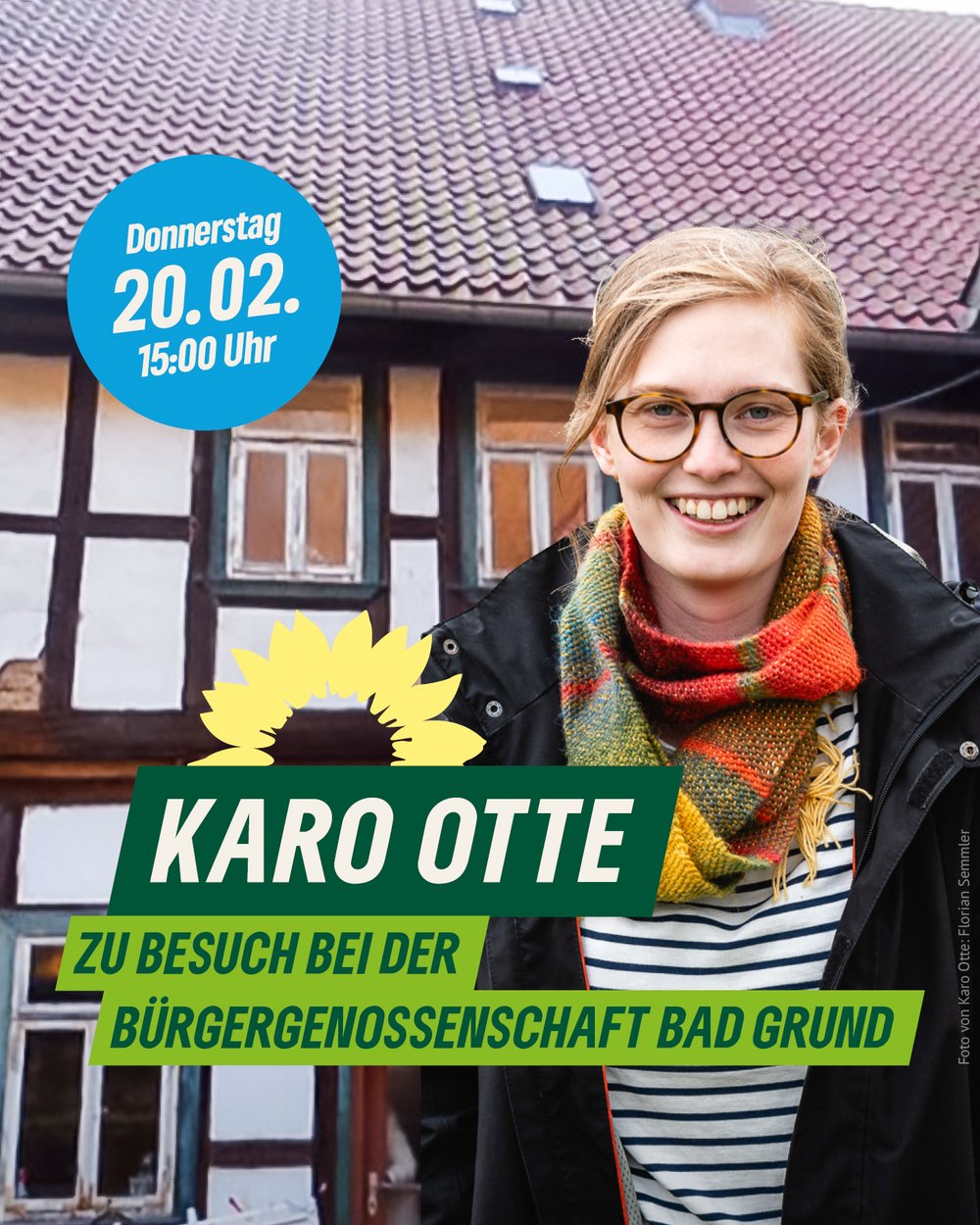 Wir freuen uns, dass Karo Otte, am 20.02. um 15 Uhr bei der Bürgergenossenschaft Bad Grund zu Besuch sein wird! Sie wird tatkräftig bei der Sanierung des Genossenschaftsgebäudes (Markt 7) mit anpacken und die Bürgergenossenschaft bei diesem wichtigen Projekt unterstützen.
