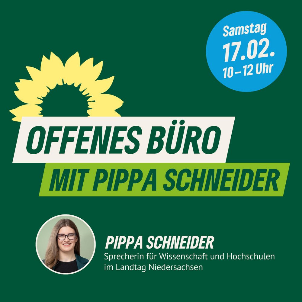 Nächsten Samstag von 10–12 Uhr laden wir alle Interessierten zum Offenes Büro ein. Es findet, wie immer, im Grünen Büro in der Johannistorstr. 2 in Osterode statt. Pippa Schneider, die Sprecherin für Wissenschaft und Hochschulen im Landtag Niedersachsen, wird zu Gast sein.