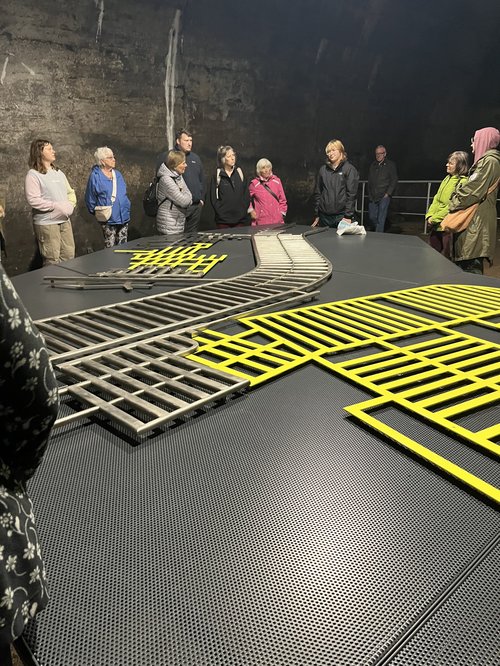 Dort gab es eine informative und eindrucksvolle Führung über das Gelände, an der auch Vertreterinnen von der „Zukunftswerkstatt Herzberg e.V.“ teilnahmen. Vorher konnte ein Teil der weitreichenden unterirdischen Stollenanlagen besichtigt werden. Hier finden sich noch Reste der ehemaligen Waffenproduktion auf dem Boden.