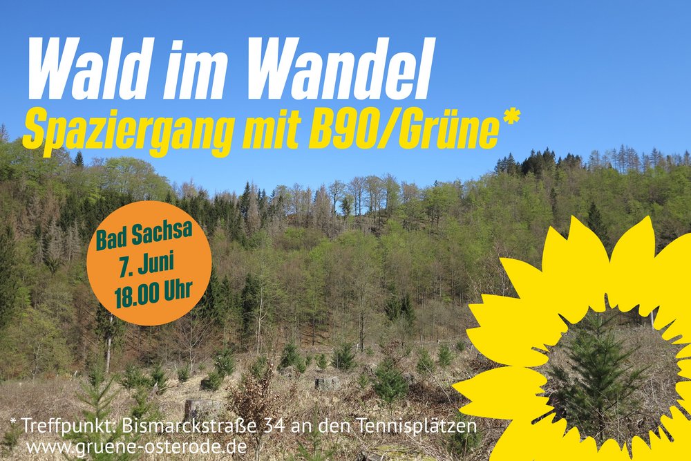 Die Grünen im Altkreis Osterode laden herzlich ein zu einem Waldspaziergang mit dem Bad Sachsaer Förster Ulrich Bosse am Mittwoch, den 7. Juni um 18.00 Uhr. Treffpunkt ist die Bismarckstraße 34 an den Tennisplätzen.